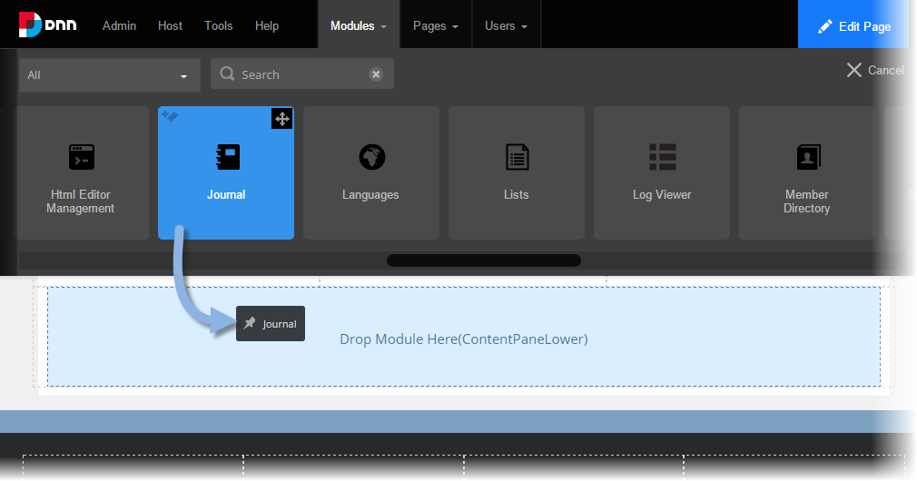 3. In your DNN installation, apply the module to a pane in a new webpage.